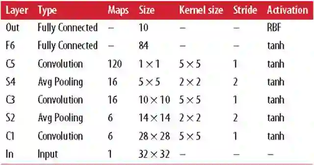 激活函数前面都用的tanh,是传统CNN中常用的,输出层用了RBF比较特殊,是一个计算距离的方式去判断和目标输出间距离做lost。。