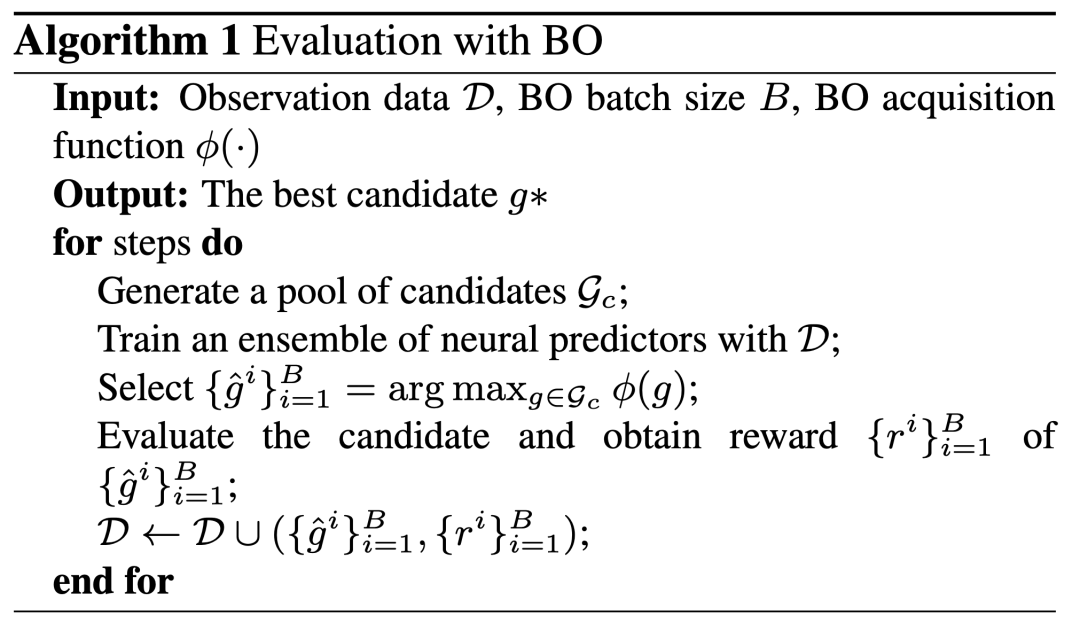 为了提升搜寻效率,该文在候选的生成中采取基于进化的候选更新,并在候选的评估中采用贝叶斯优化(Bayesian optimization,BO)。