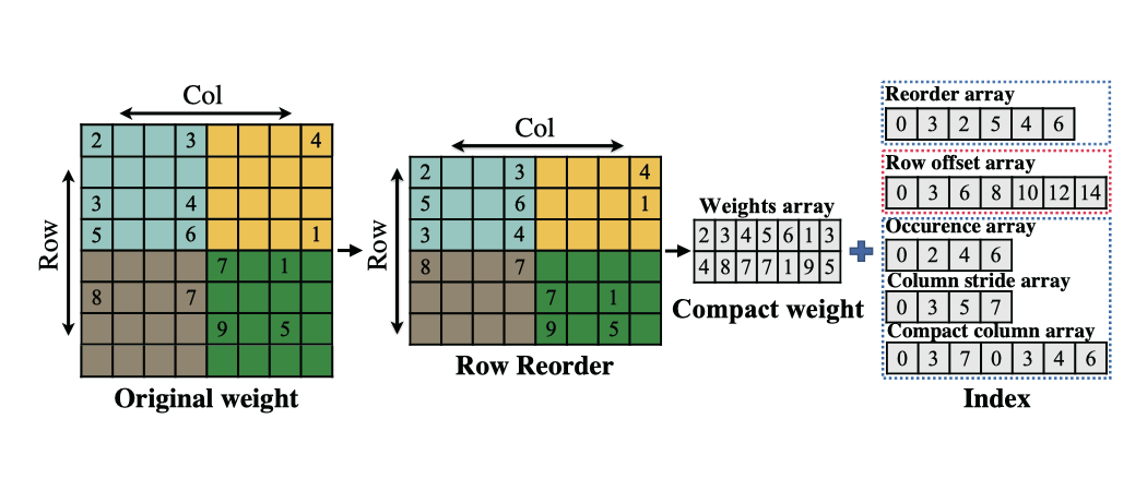 权重剪枝常用来去除神经网络的冗余度以降低资源需求并加速网络的前向推理。目前的权重剪枝工作主要分为非结构化的权重剪枝 (unstructured weight pruning)、粗粒度的结构化权重剪枝(coarse-grained structured pruning)和细粒度的结构化权重剪枝(fine-grained structured pruning)。