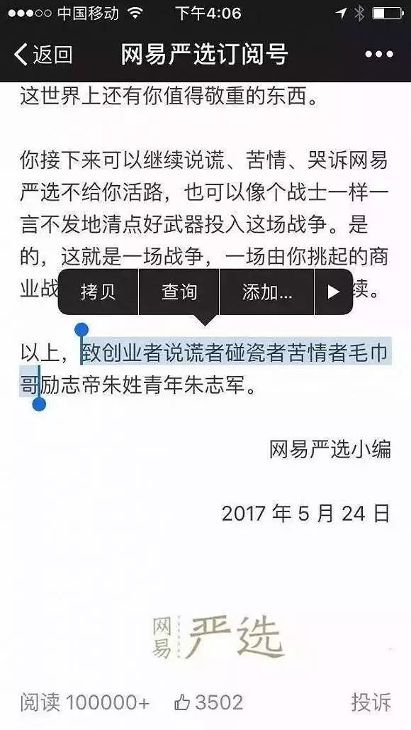 这种“一言不合”就开战的方式,还真是网易家传统。回想当年和“毛巾哥”的那次风波,网易严选在公开回应的最后一句话便是,“是的,这就是一场战争,一场由你挑起的商业战争。”然后便是大幅降价,而且依旧“G20同款”。