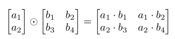 Hadamard 积是元素之间的乘积,并得出一个向量。从下图可以看出来 Hadamard 积就是将向量对应元素相乘积。