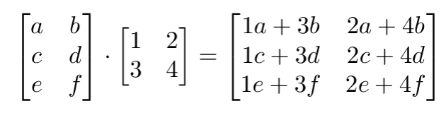 矩阵乘法是由一组乘法法则组成,他们共同作用以乘得一个新矩阵。