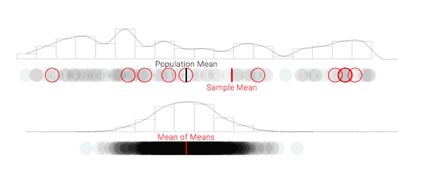 当采样的数量接近无穷大时,我们的抽样分布就会近似于正态分布。这个统计学基础理论意味着我们能根据个体样本推断所有样本。结合正态分布的其他知识,我们可以轻松计算出给定平均值的值的概率。同样的,我们也可以根据观察到的样本均值估计总体均值的概率。