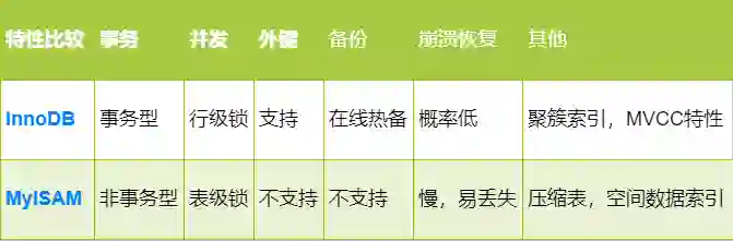 查询结果表中的`Engine`字段指示存储引擎类型。