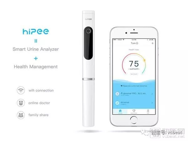 Hipee是用于尿液分析的智能设备。它可以通过Wi-Fi连接到手机,分析用户的健康状况,为用户提供饮食和健身建议,并提供全面的健康管理服务。定期尿检是一种简单有效的健康监测和诊断模式。