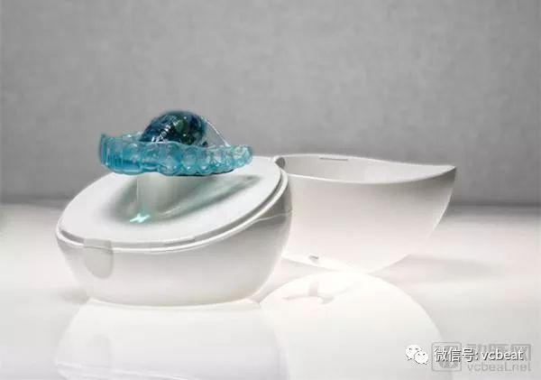 BruXane是为每个病人定制的。外面的盒子可以在不使用时保护BruXane,同时还可以充当充电器和数据传输器。