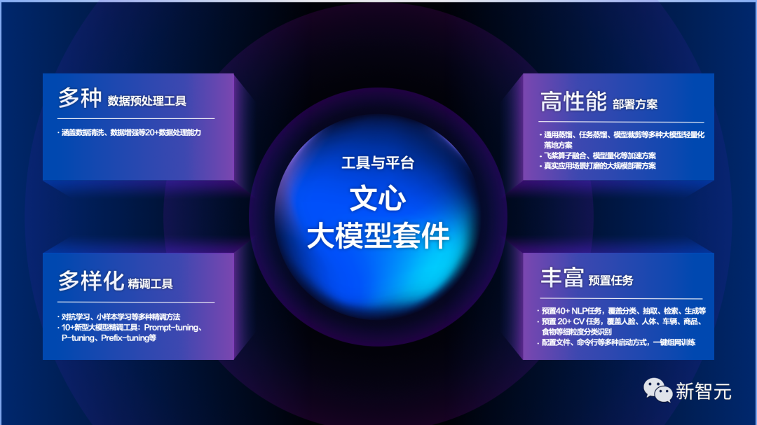 为了尽可能地实现这个目标,本次百度与10个大模型一同发布的,还有一套全方位的工具和平台,包括大模型开发套件、大模型API、内嵌了大模型能力的EasyDL和BML开发平台,面向不同类型的开发者,全面释放大模型的使用效能,进一步降低应用门槛。