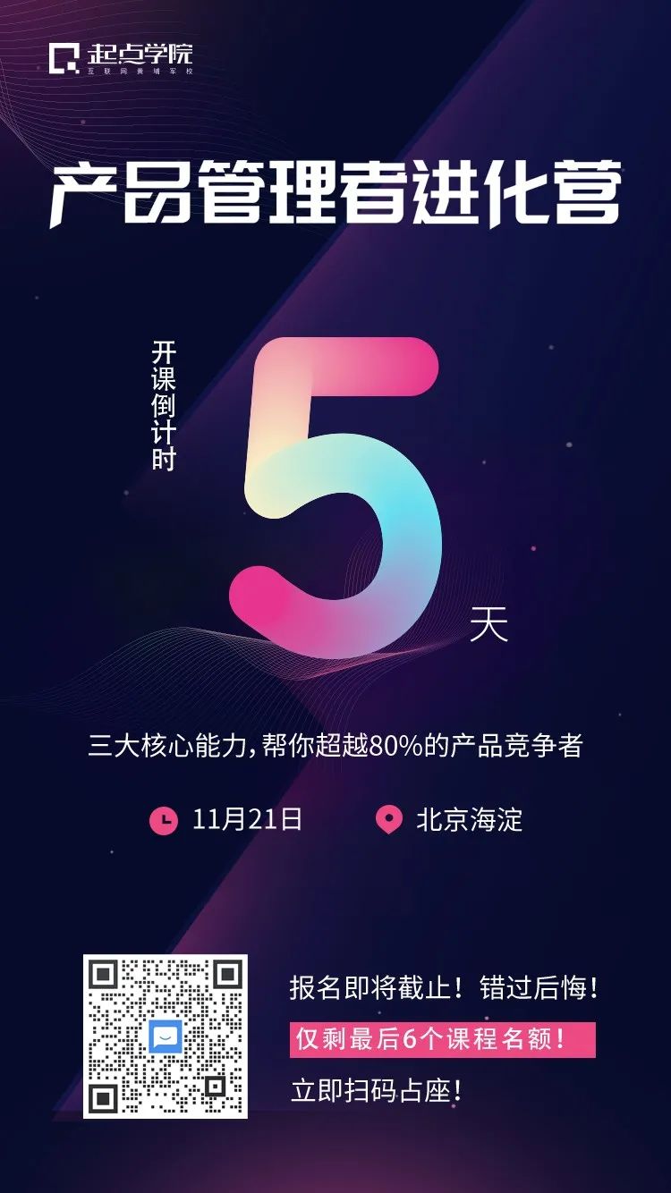 《产品管理者进化营》也绝对是业内物超所值的、实用的学习+咨询会,每期开班仅限50人,保证教学质量。(目前仅剩6个名额)