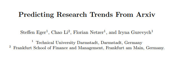 大量研究者在预印本网站 arXiv 上发表前沿研究,那么基于 arXiv 判断研究趋势是否可行呢?近日,来自德国达姆施塔特工业大学和法兰克福金融管理学院的研究者在 arXiv 上发表论文,试图基于两个 arXiv 论文数据集预测相关领域的研究趋势。
