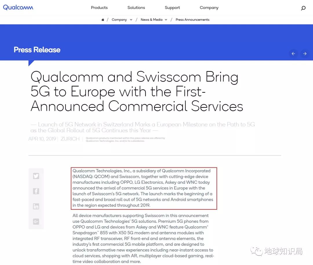 欧盟之外,独行侠瑞士已经行动起来,宣布和高通联合推广5G。同时,支持瑞士电信的所有设备制造商都使用了高通的5G解决方案,包括Askey和WNC的设备与LG的5G手机,还有来自中国OPPO的5G手机都在其中。值得注意的是,OPPO为了打入瑞士市场,在4月10日发布的Reno系列手机中,推出了支持瑞士5G网络的5G版本。