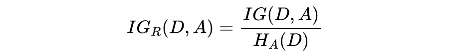定义为特征 A 的信息增益 IG(D,A) 与训练数据集 D 关于特征 A 的取值熵