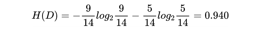 熵是信息的期望,也就是计算所有分类包含信息的期望值: