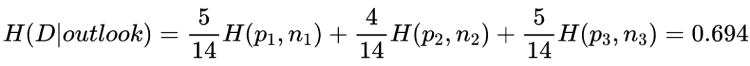 ;在 rain 下 。那么数据集 D 在 Outlook 特征的条件熵表示为: