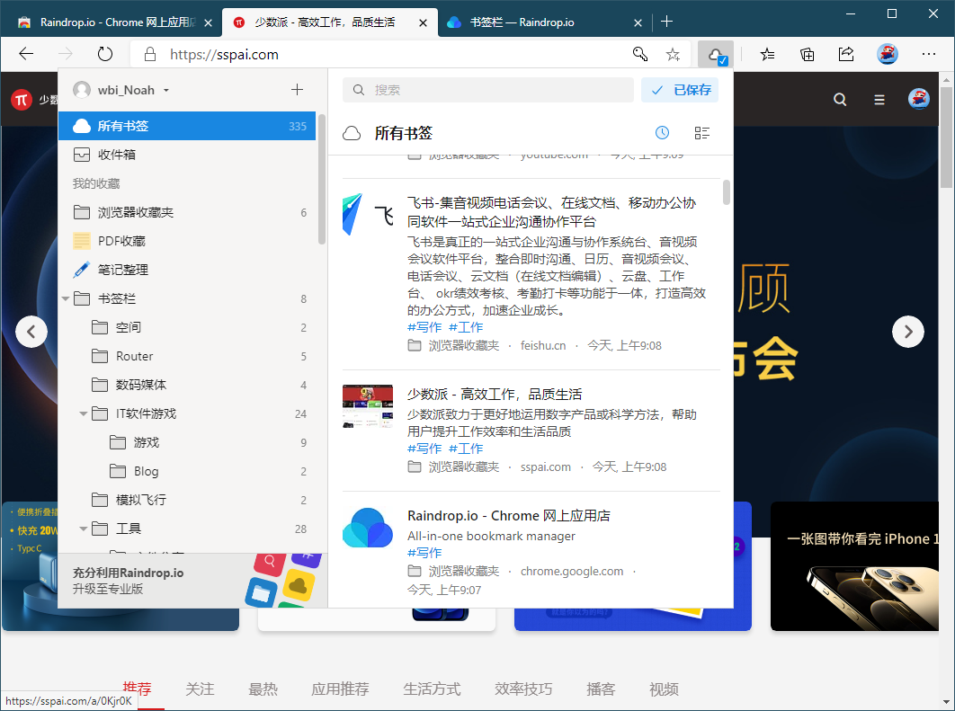 Raindrop.io 是一款融合了书签管理、稍后阅读以及手机剪贴功能的综合性管理工具,现在已经更新至第五代了,提升了易用性,功能更加完善。