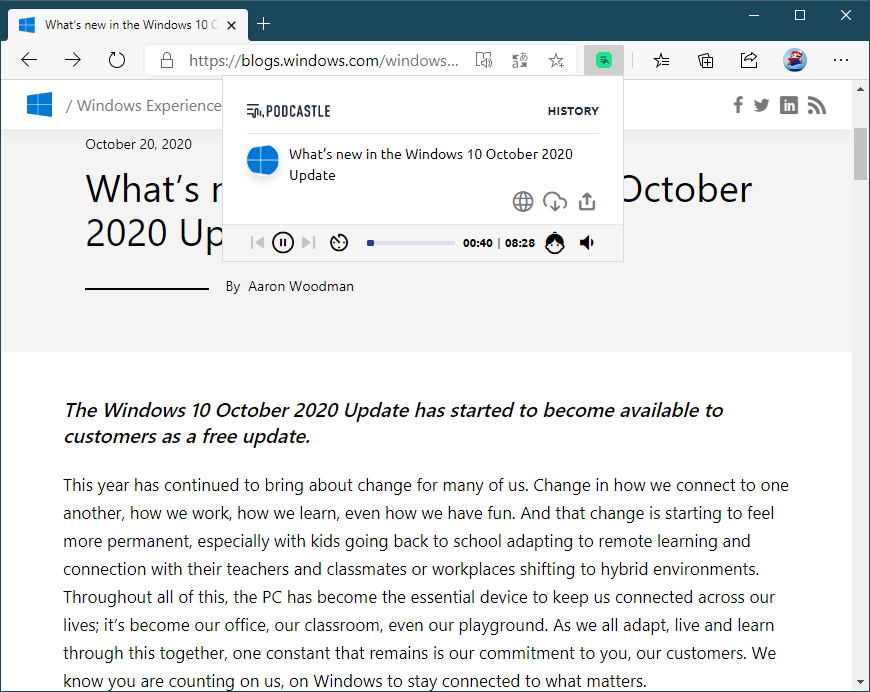 Microsoft Edge 内建的阅读模式非常出色,尤其是语音朗读功能,听起来极其顺滑、自然、优美动听。这可羡煞一众 Chrome 用户(比如我自己)。不过我们也一样可以通过浏览器扩展插件获取文字朗读功能。