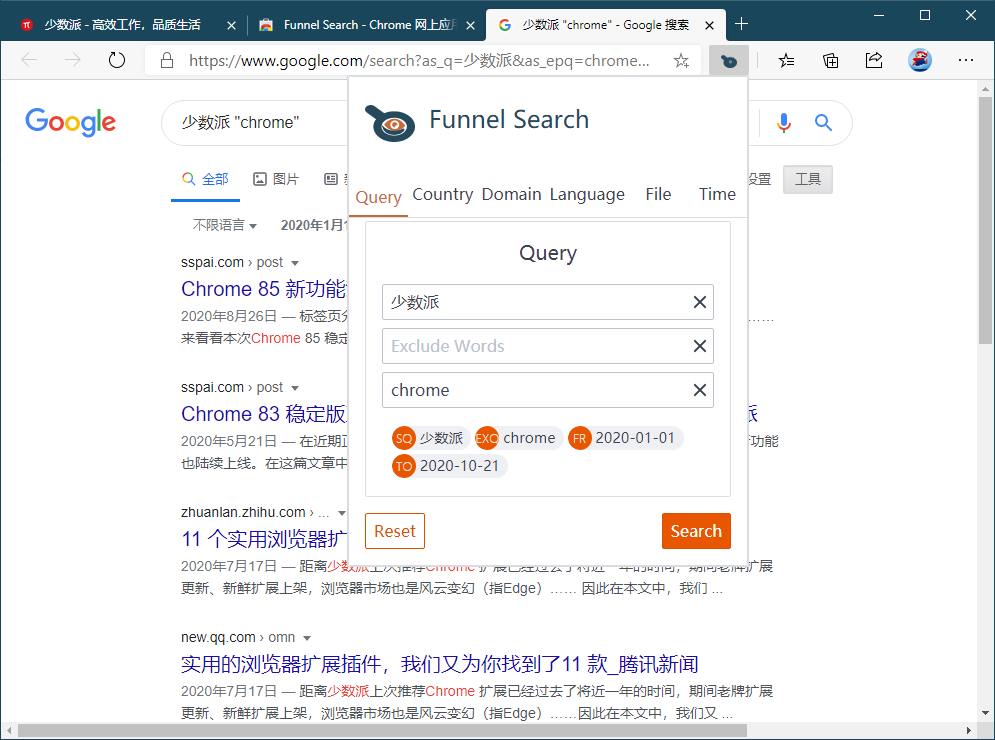 如果你经常使用 Google 搜索,可以在 Chrome Web Store 免费获取 Funnel Search。