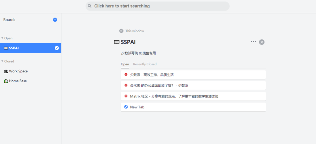 浏览器标签开多了,眼睛也会疲乏,所以现在出现了许许多多不同功能的标签管理工具,比如将标签页归纳成列表、展示成缩略图、一键开关等等。不过通常来说,一堆标签中总有属于同一种「类别」的,例如上班时打开的 OA 和邮箱、摸鱼时候打开的视频和微博、写作过程查阅的文献等等。Blink 这款扩展插件就考虑到这种需求,通过「工作板」区分不同用途的标签。