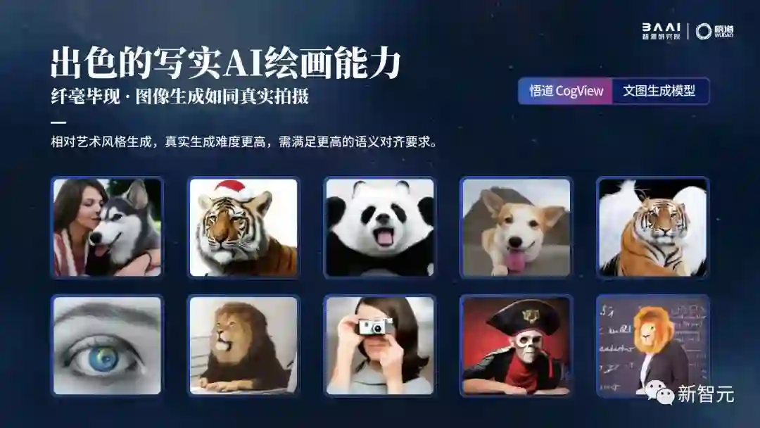 悟道CogView文图生成模型变身「写实主义画家」,画面生成真实如同摄影直拍。相对目前AI绘图中常见的科幻、艺术风格,追求真实生成效果难度更高,需要满足更高的语义对齐要求。