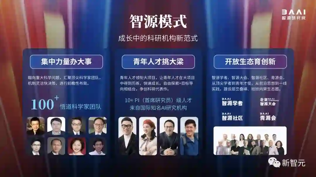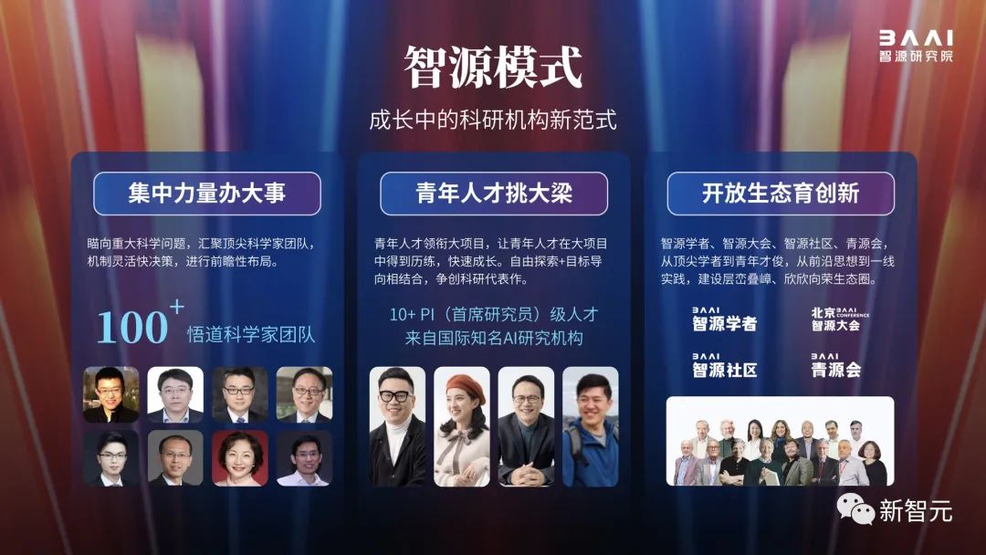 作为创新型研究院,智源研究院在运行机制探索中,形成了集中力量办大事、青年人才挑大梁、开放生态育创新的独特智源模式。