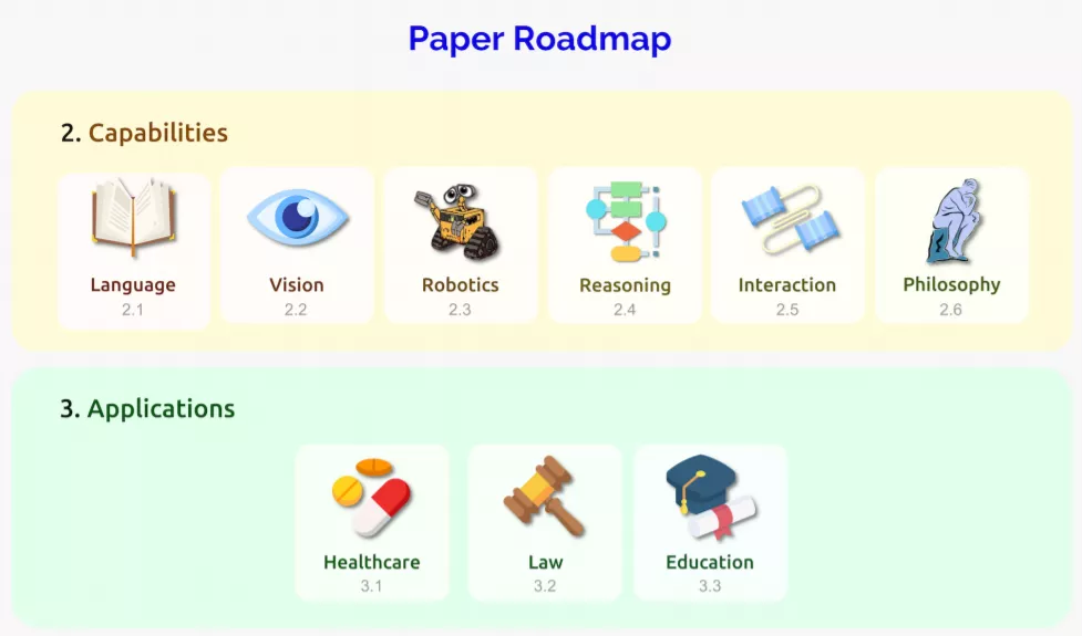 论文正文分为四个部分,分别阐述了基础模型的能力、应用、相关技术和社会影响,其具体内容如下:
