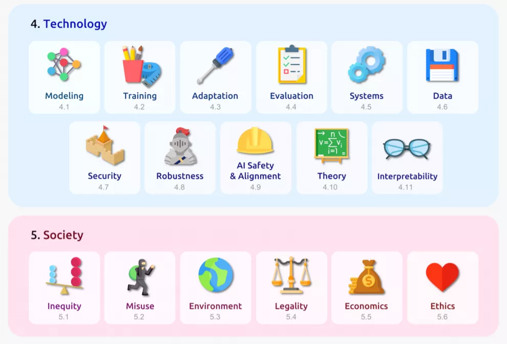 技术:建模、训练、适应、评估、系统、数据、安全与隐私、稳健性、理论、可解释性等;