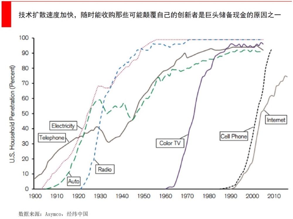新一代科技互联网巨头与老一代相比,也更喜欢囤现金了。据《经济学人》计算,自1996年以来,思科、英特尔、甲骨文、高通和德州仪器这五家公司的净现金,平均仅为其现金流的1.3倍。