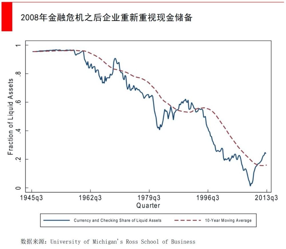 新机会不足也是企业选择现金的原因。当宏观经济停滞不前,产能过剩的时候,由于没有太多新机会可供投资,但企业利润或者融资得来的钱又太多,可能导致企业拥有过量现金。