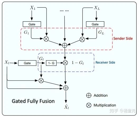 对问题1,我们提出了GFF,借鉴LSTM中的Gate机制,在不同位置给高低层特征根据有效性,给予不同的加权。