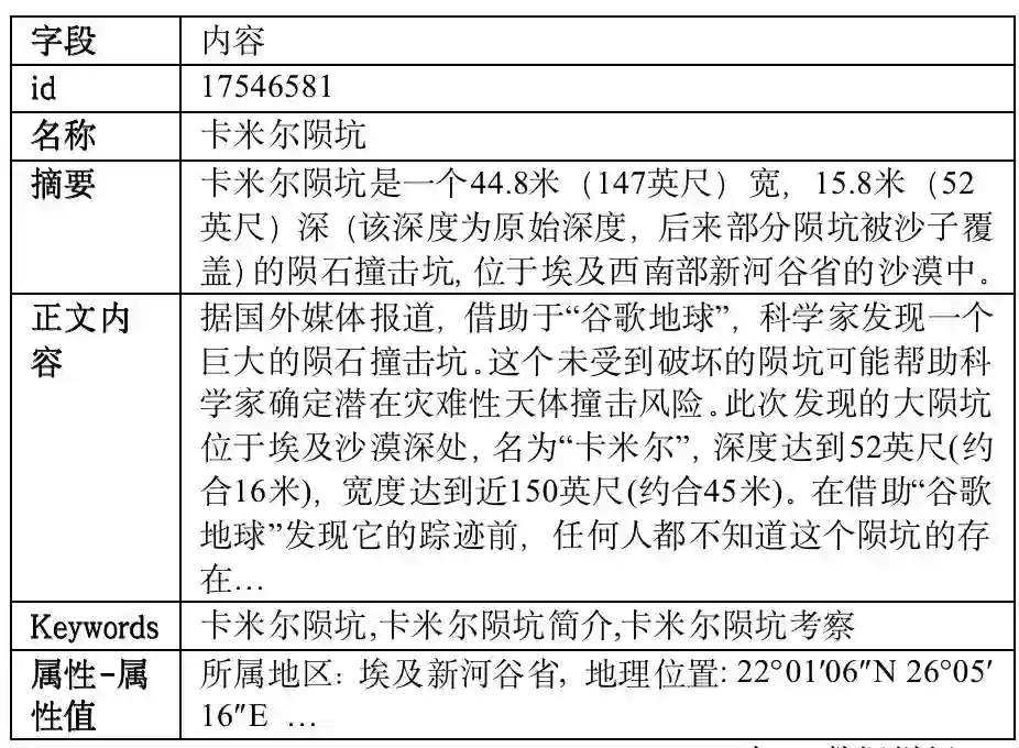 实体类型推断任务指的是指通过上述实体的信息,对实体进行分类,上面示例中的卡米尔陨坑,其对应的标签是『位置_自然景观』。