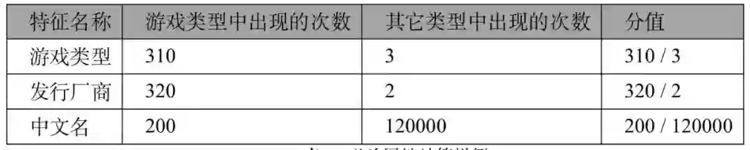 基于第一部分生成的 train,构建了一套自动生成「必杀」特征的逻辑,如下(1)对所有标签为游戏的数据进行统计,生成如下统计结果: