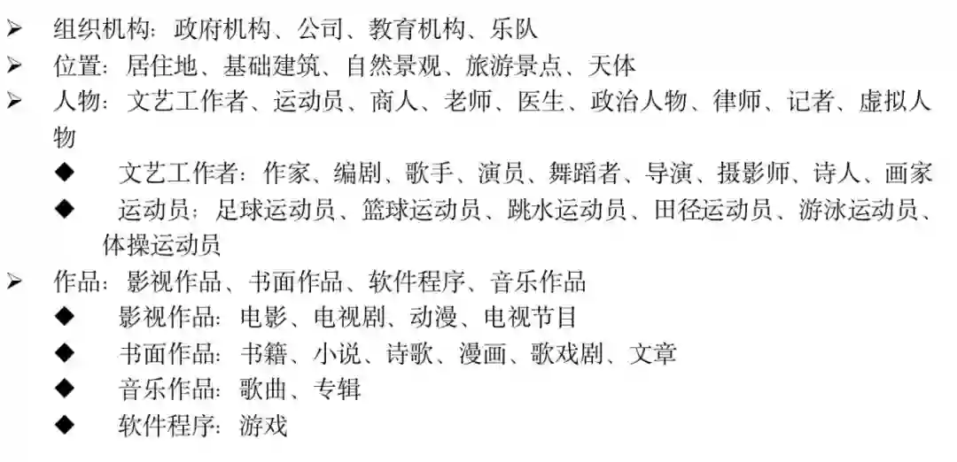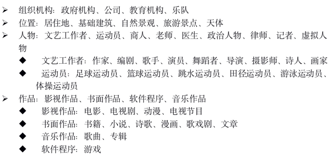 任务涉及的类型包括组织机构、人物、作品、位置等多个领域,54 种实体类型。实体类型之间具有层级关系。标签体系如下:
