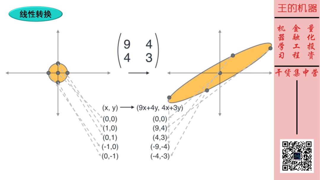 不懂?没关系,跟着上图,试着用矩阵 [9, 4; 4, 3] 来转换几个标准点