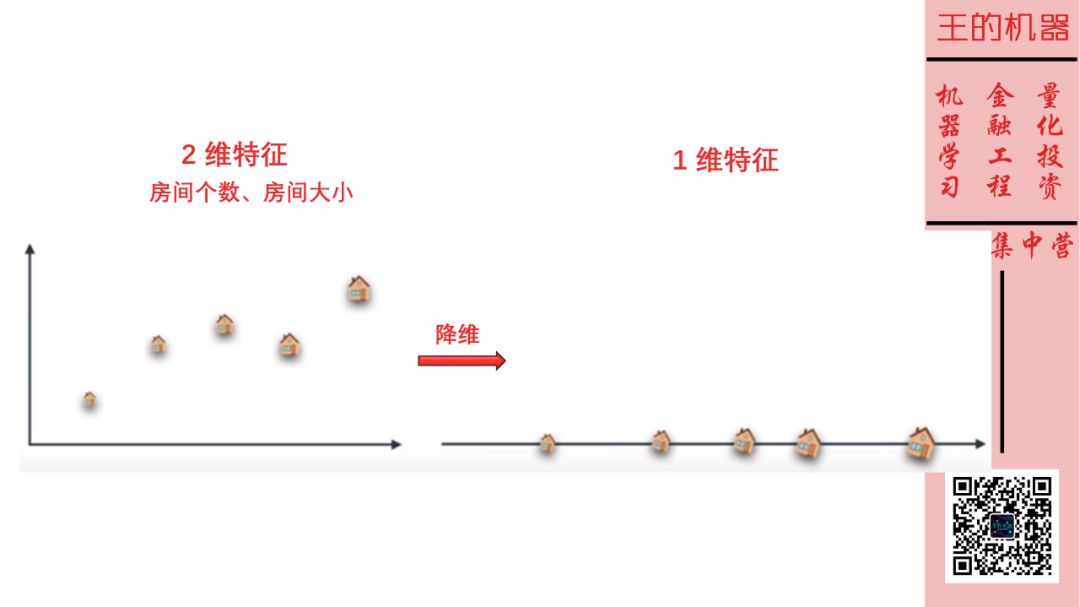 特征房间面积和房间个数有些重复了,因此把它们降到 1 维也没有丢失太多信息,如下图。