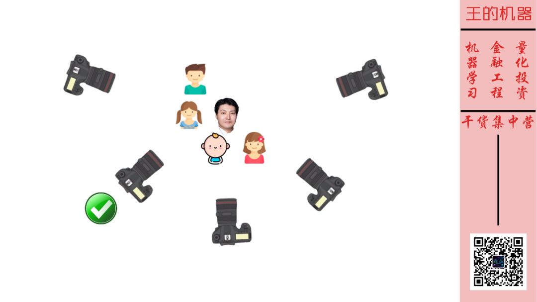 回答:放在图中打钩的地方,因为人脸面对照相机正面分布最开,最容易把所有人脸都照进来。