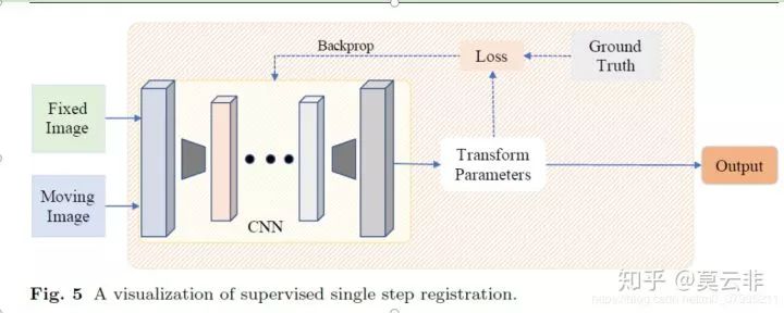 这种做法就是直接通过一个神经网络来回归变换参数(可以是变换矩阵的参数,也可以是一个形变场),相应的金标准就是真实的变换参数,可以通过手工配准得到,也可以通过其他配准方法得到。这种方法的弊端主要在于金标准不好做。