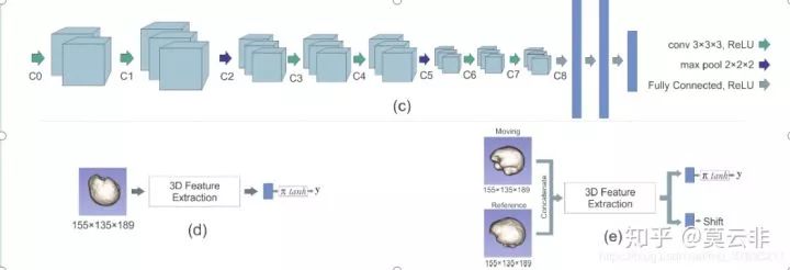 上图是三维图像块做姿态估计的网络架构。分为两步,第一步是估计出三维图像块的旋转角度(相对canonical坐标系),可视为粗配准,loss采用的常见的MSE。第二步是精细配准,将上一步得到的粗配准后的图像和参考图像输入网络,得到最终的变换参数(3个旋转参数,3个平移参数)。平移参数的loss依然是MSE,旋转参数的是geodesic loss。由于这篇论文的任务是姿态估计,并不是任意两张图像的配准,所以网络的输入一般是单幅图像,这里第二步输入了参考图像,这里的参考图像是通过梯度中心匹配算法计算出来的。