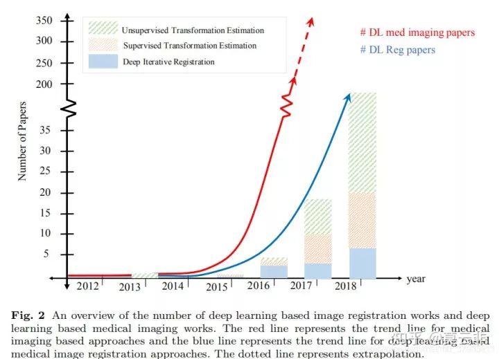 这里笔者尝试解读一篇2019年预发表的《Deep Learning in Medical Image Registration: A Survey》论文综述,在这篇综述中,原作者对当前深度学习在医学影像配准中的各个研究方向做了比较系统全面的总结概括,既有纵向的近十多年来研究趋势的总结,也是横向的各个研究方向的对比。尽管可能存在解读不够深入,文献选择不够典型等问题,但对于刚入坑的萌新来说,应该算是一篇不错的入门论文。