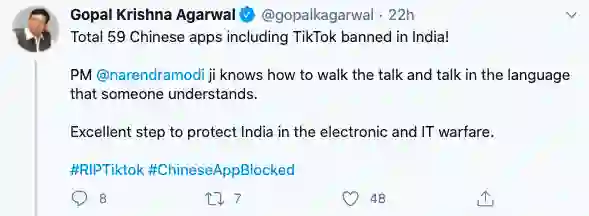 当时「删除中国App」的应用程序在印度上线仅两周,下载量第一。开发者称,为了让印度「自力更生」。这一App在Twitter讨论热烈,获得许多印度KOL的推荐。印度禁止59款app后,印度国内许多KOL称,这是印度在保护本国方面迈出的重要一步。