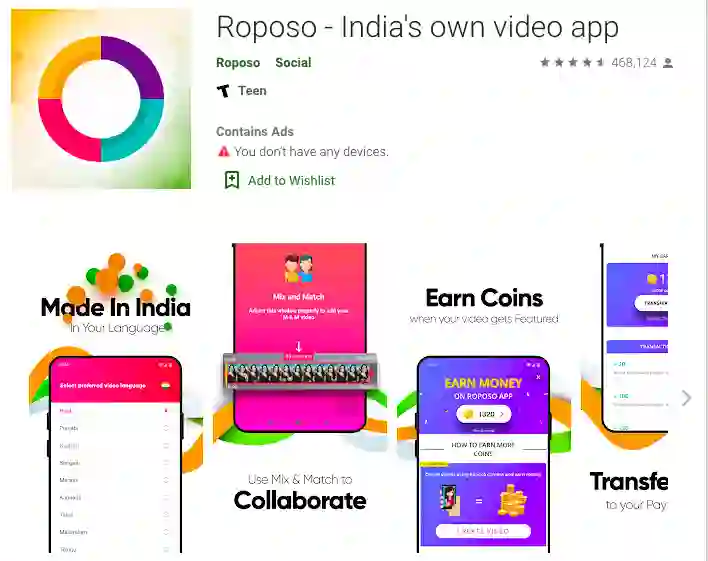Roposo的宣传词就是「印度自己的视频App」。目前大概有6500万用户。TikTok下架之前,在其最大的海外市场印度,大约有1.2亿用户。