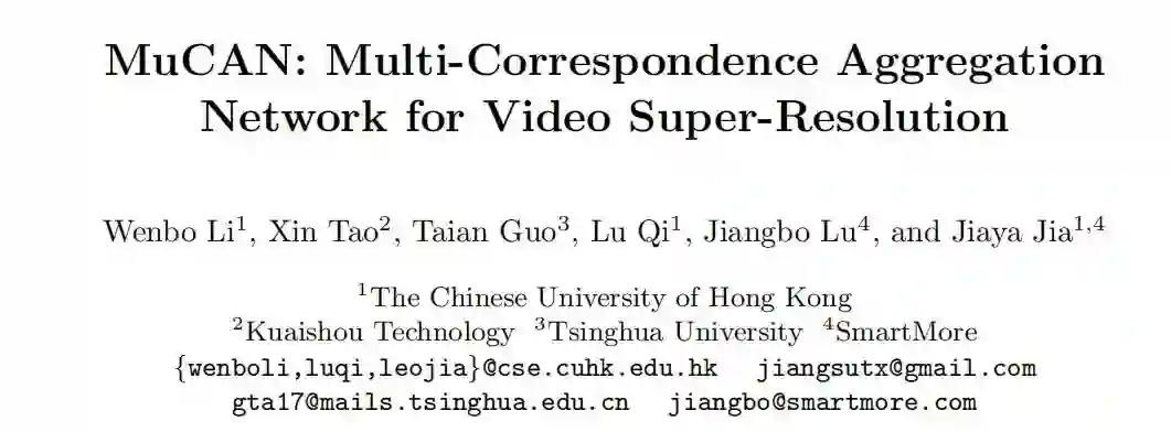 受此启发,作者提出了一种时序相关集成策略以更好的利用帧间的相似块,提出一种跨尺度非局部相关集成策略以更好探索图像不同尺度见的自相似性。基于上述两个新提出的模块,作者构建了一种有效的MuCAN(Multi-Correspondense Aggregation Network)用于视频超分,所提方法在多个公开数据集上取得了SOTA性能。