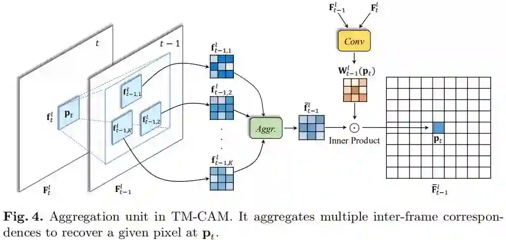 上图给出了TM-CAM中的集成单元示意图,很明显,它采用块匹配策略。由于1对1的映射难以捕获真正的帧间相关性,故而作者提出采用多对1的方式集成融合,类似于非局部均值的方式。