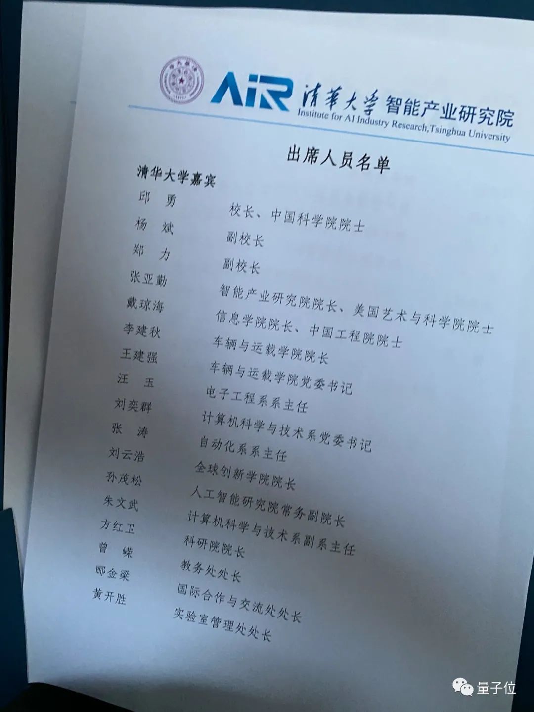 包括清华大学校长邱勇院士、清华大学副郑力副校长,清华大学信息学院院长戴琼海院士……清华车辆学院、电子系、计算机系、自动化系、公管学院、全球创新学院的院系负责人,悉数到场。