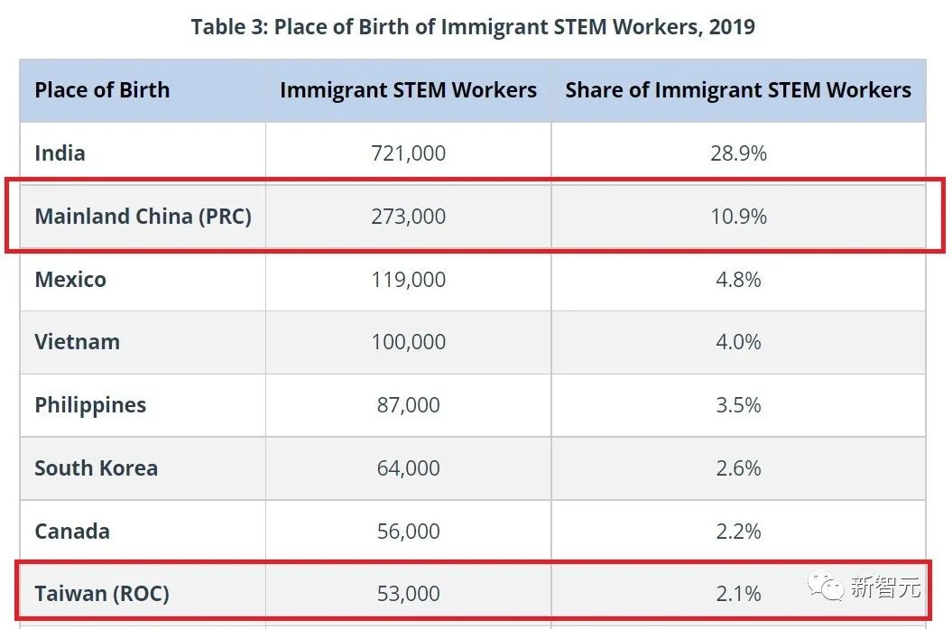 另外,中国在海外的研究人员数量巨大。根据美国移民委员会(American Immigration Council)的数据,美国高校STEM专业学生16%来自中国;在美从事STEM领域工作的中国大陆及台湾省人超30万,占全部STEM技术移民的13%。