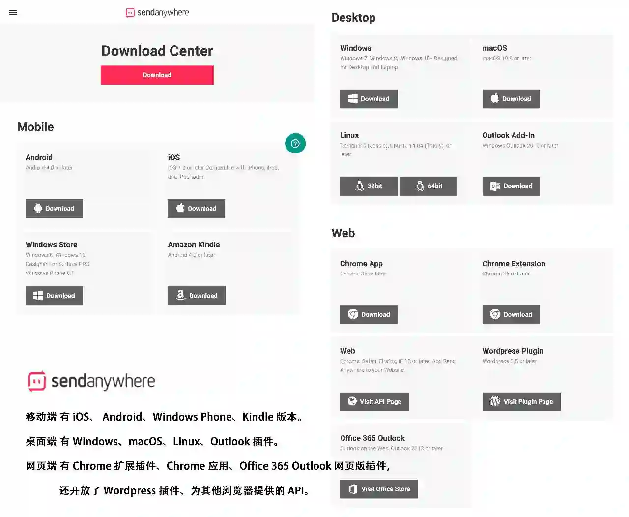SendAnywhere 支持全平台的客户端