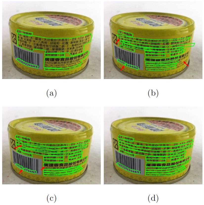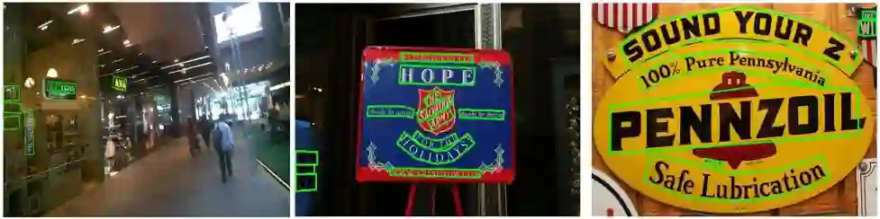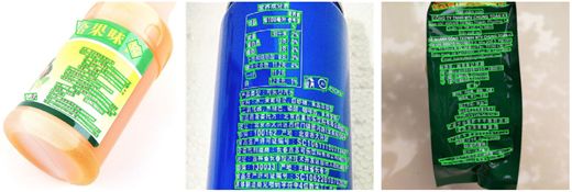 图4展示了一些可视化的结果图。可以看到,该方法能处理任意形状的文本,在商品密集文本上也能取得很好的检测效果。