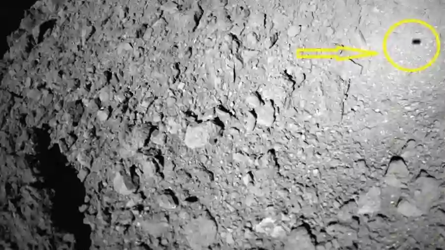 10月3日,由德国制造的MASCOT机器人给地球人类传回了第一张惊人图片。这个尺寸只有鞋盒大小的德国机器人MASCOT从51米的高空坠落,然而只有51米高却让MASCOT降落了20分钟,在还没有登陆龙宫小行星之前MASCOT拍摄了第一张照片,照片上显示出龙宫上难以置信的凹陷地形,照片上还显示MASCOT的身影。在整个20分钟的下降过程,MASCOT总共拍摄了20张照片。