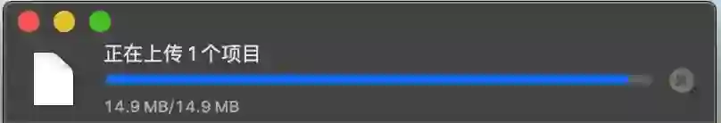 正如上文所述 Mac 上 iCloud 云盘同步卡住时,最容易注意到的现象就是在访达的 iCloud 云盘旁边显示一个永远也不会被填满的圆圈,而且点击这个圆圈,还有一个永远走不满的进度条,甚至 macOS 还会直接弹窗提示「你某某文件无法进行同步」。