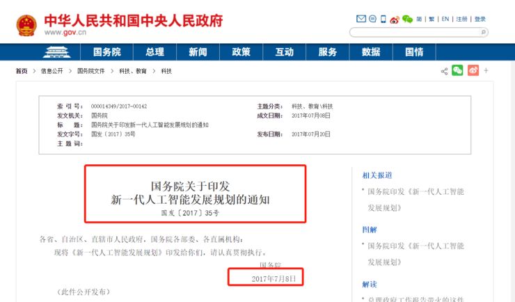 2017 年 7 月 20 日,我国国务院印发《新一代人工智能发展规划》,其中提到,新一代人工智能发展分三步走的战略目标,到 2030 年使中国人工智能理论、技术与应用总体达到世界领先水平,成为世界主要人工智能创新中心。