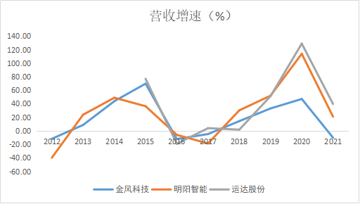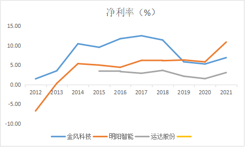 综上所述,风机厂商作为产业链的中游环节,没有较强的话语权,因此既要承受上游原材料价格波动所带来的成本压力,又要承受价格战所带来的收入压力。尽管风电项目的市场盘子正在不断扩大,但双向承压导致行业利润空间不断被挤压,如图所示,包括明阳智能、金风科技、运达股份在内的多家风机厂商均在2017-2020年出现明显的增收不增利现象。