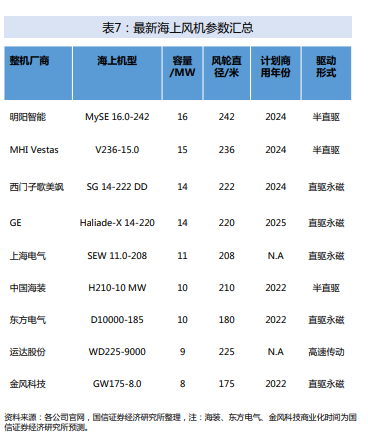 既然风机大型化是海上风电产业降本的核心,那么大容量便是体现海上风机产品竞争力的主要指标之一。